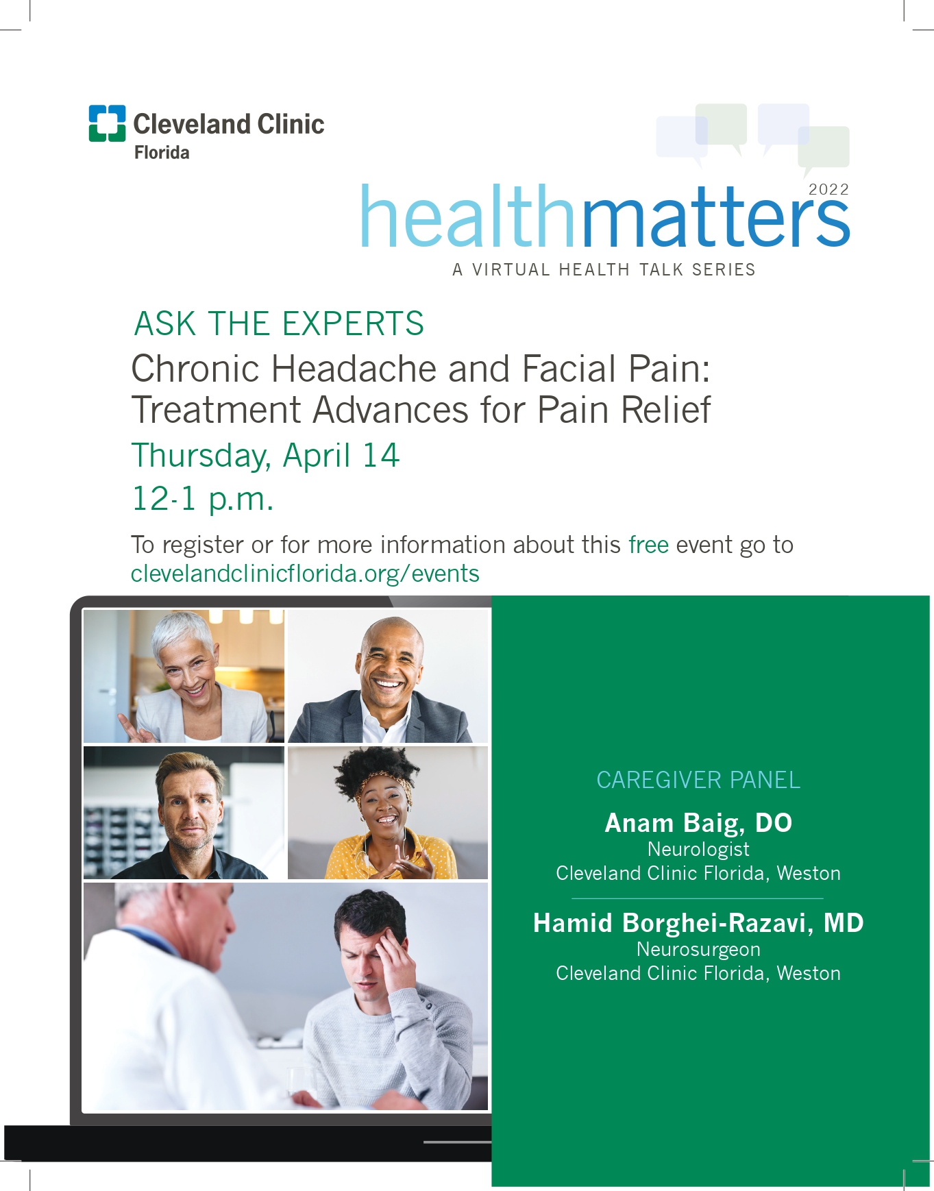 Panel speakers include Neurologist Anam Baig, DO and Neurosurgeon Hamid Borghe-Razavi, MD from Cleveland Clinic Florida, Weston.
